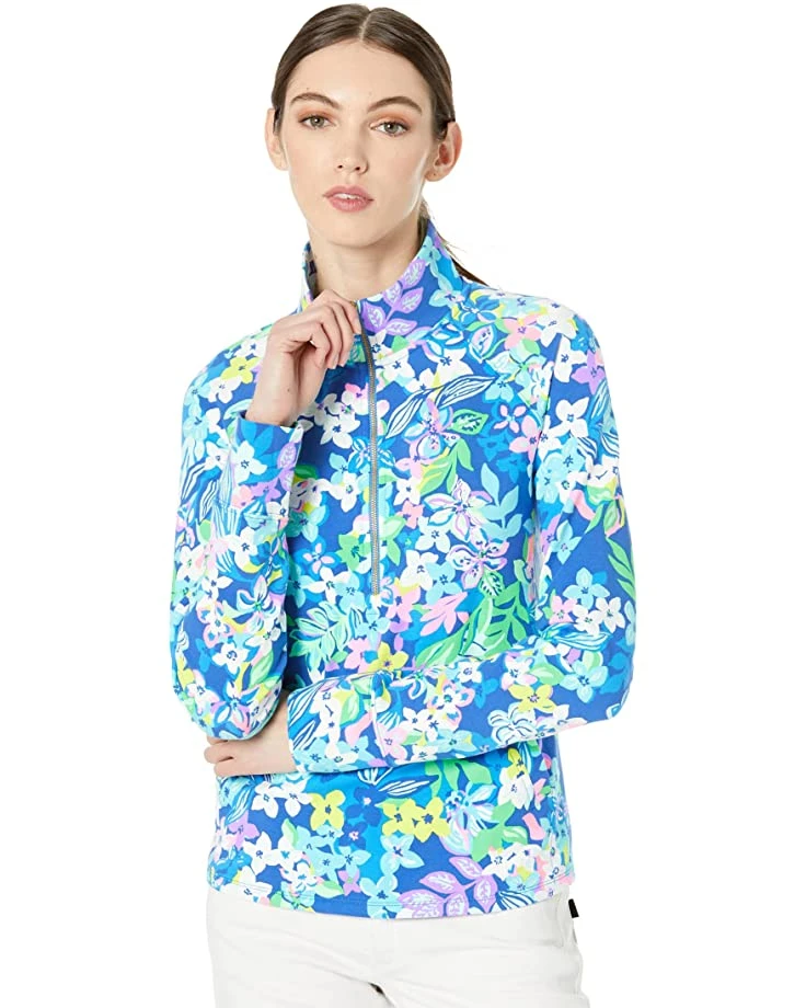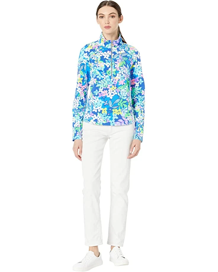 - Colorful and lively, the Lilly Pulitzerยฎ Melena UPF 50+ Popover pullover will make you look spirited and lovely when you step out.
