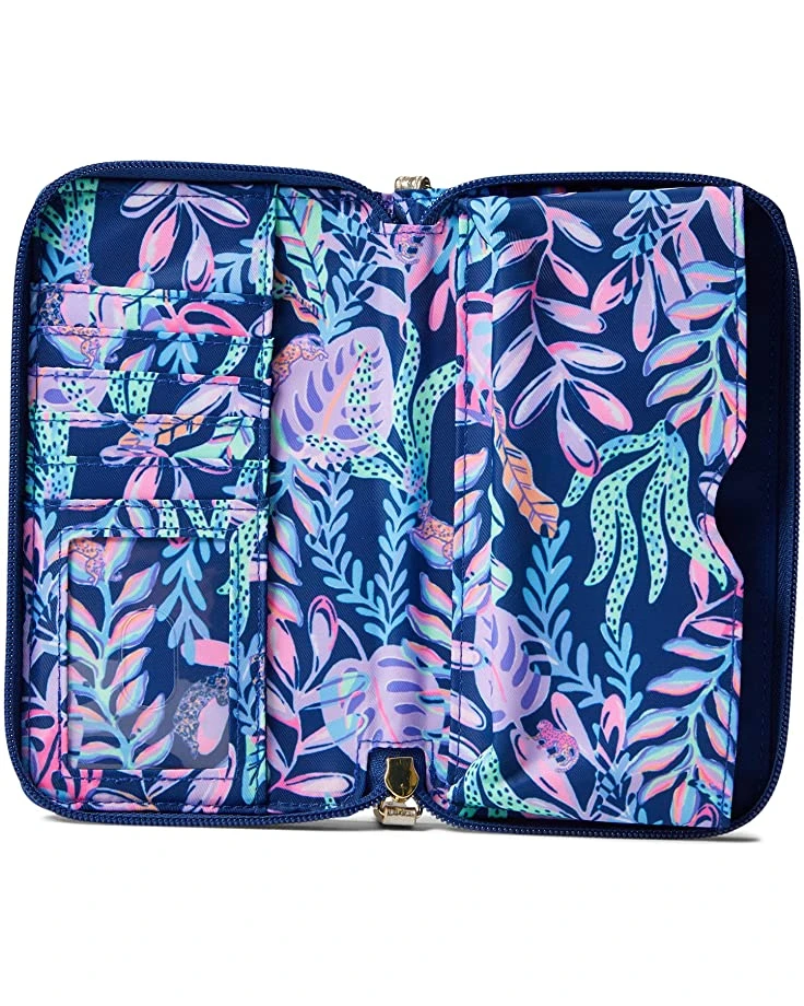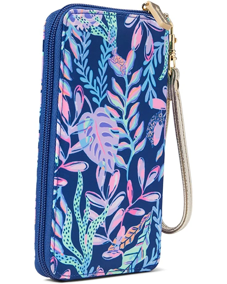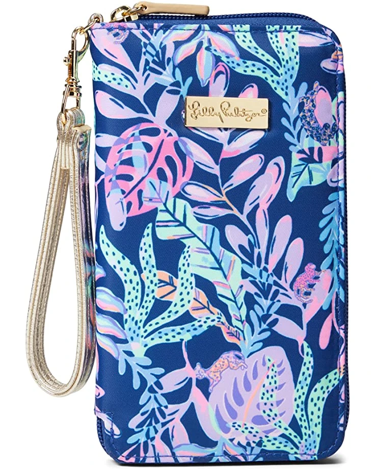 - The Lilly Pulitzer® Tiki Palm Wristlet is a fashionable piece that’s perfect for all your daily essentials. This case is crafted in a printed polyester fabrication, and is designed with a smartphone pocket and credit card slots to keep everything organized.