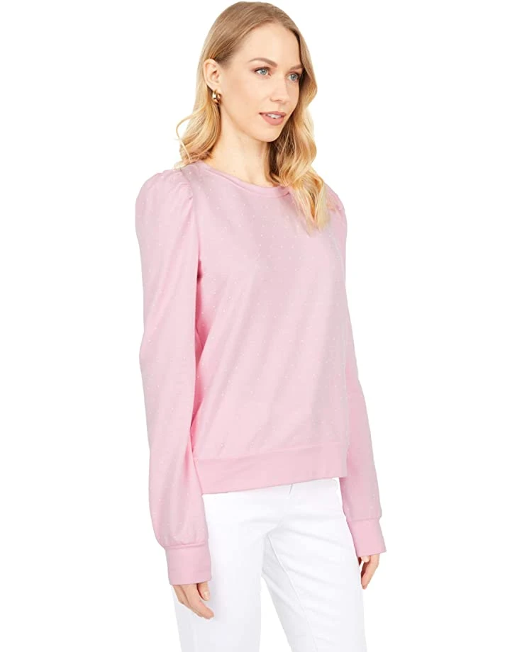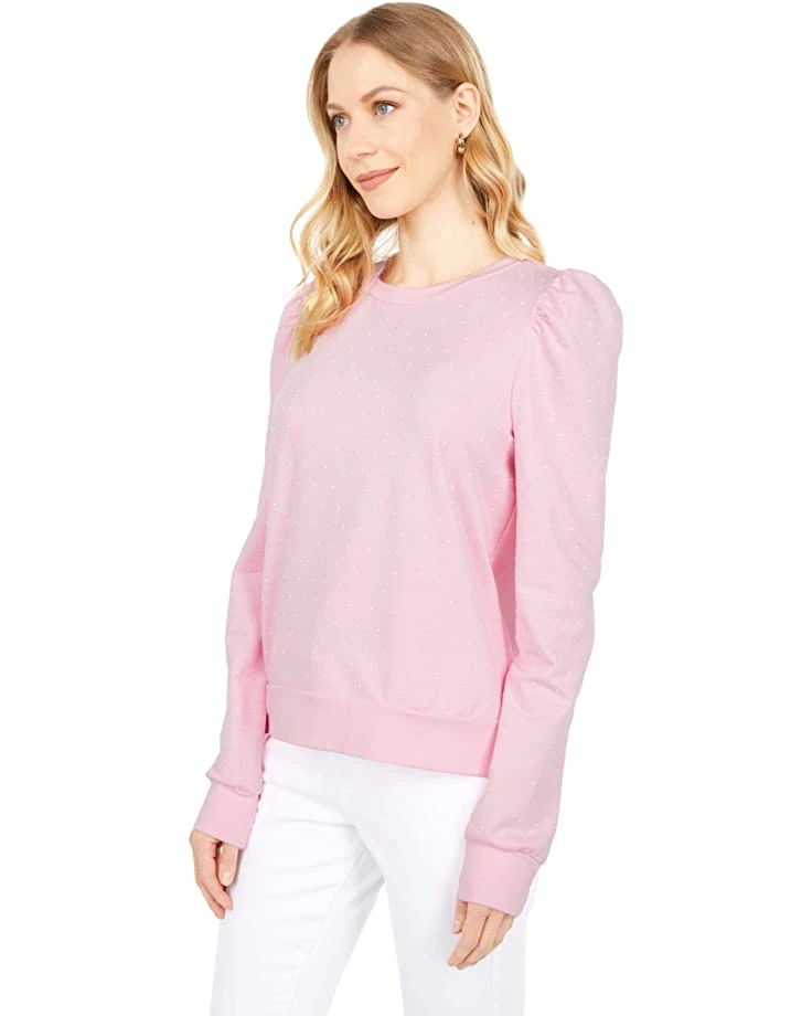- Add a fun, fresh look in the Lilly Pulitzer® Jansen Pearl Sweatshirt with embellishments accenting the soft color in shirred, puff sleeves.
