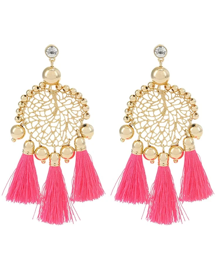 - Lilly Pulitzer® Sea Dreamer Earrings feature a gold dangly earrings with tassel details.