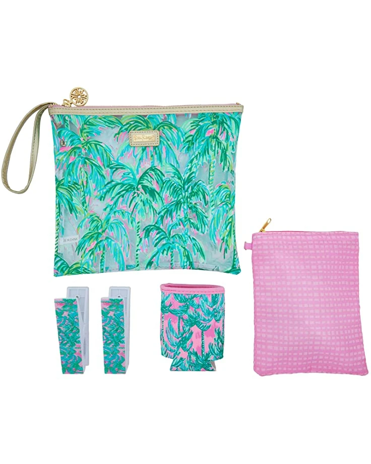 - Swim season isn’t over yet! Pick up the Lilly Pulitzer® Beach Day Pouch featuring matching prints. Set includes a pouch, drink hugger, and towel clips.
