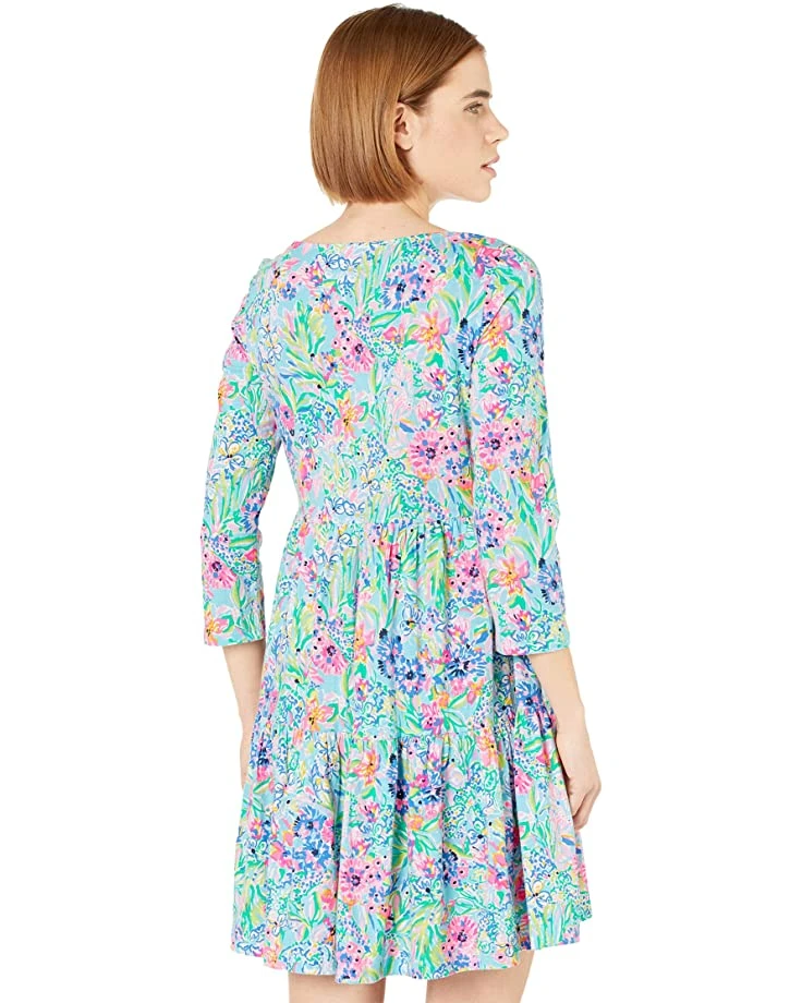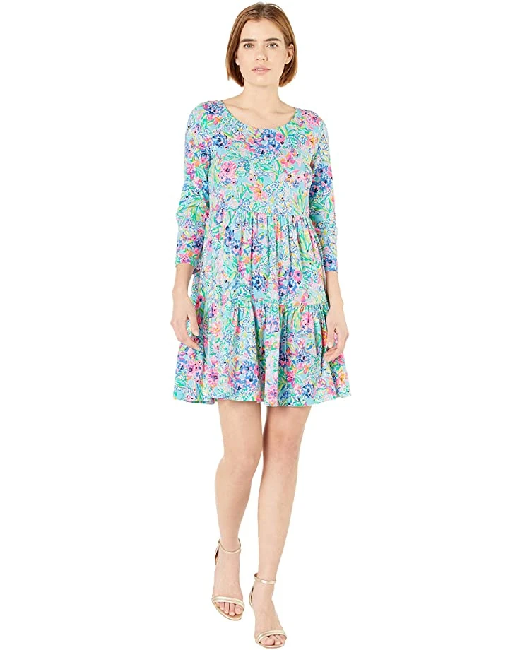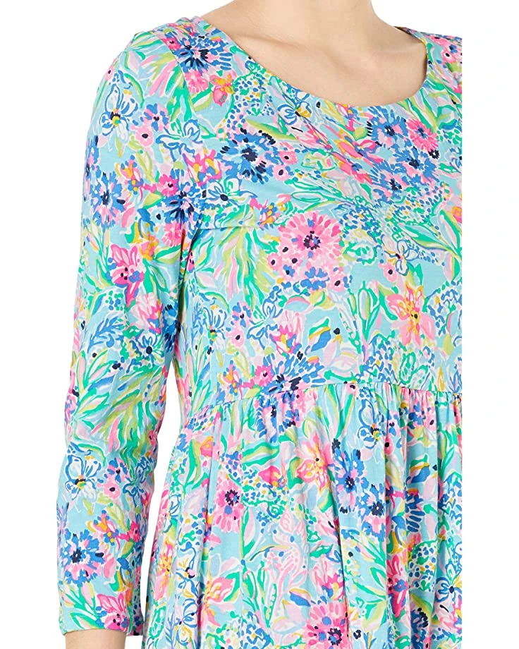 - Start your spring off right in the Lilly Pulitzer® Geanna Dress featuring a classic three quarter sleeve dress boasting pleated detailing at waist for added shape, boasting all over floral print.