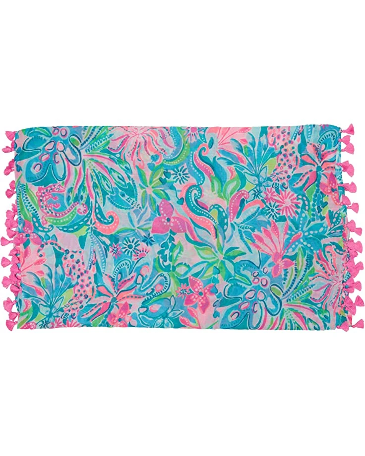 - The Lilly Pulitzer® Resort Infinity Loop Scarf is printed with a pop of color at the trim.