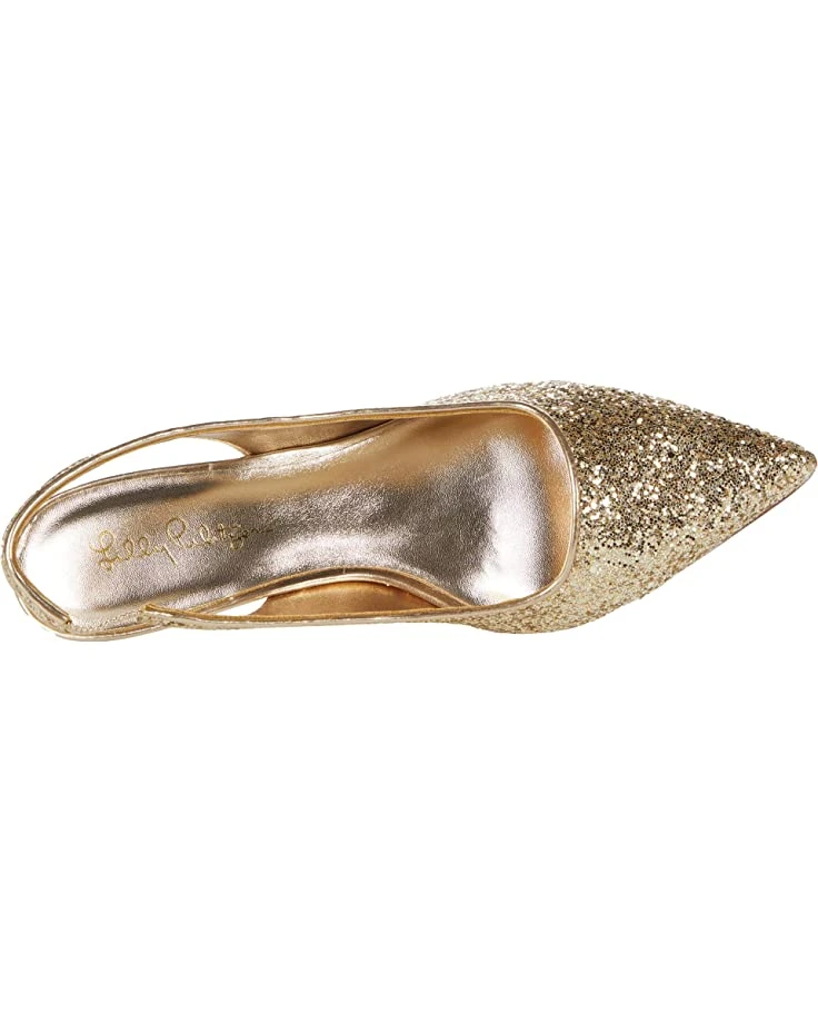 - Enjoy a night of glitz and glam in the Lilly Pulitzer® Shaina Slingback Heel. The pointed-toe shoe is glitzed out with allover glitter and gold. The slingback design and low heel provide comfort to the chic look.