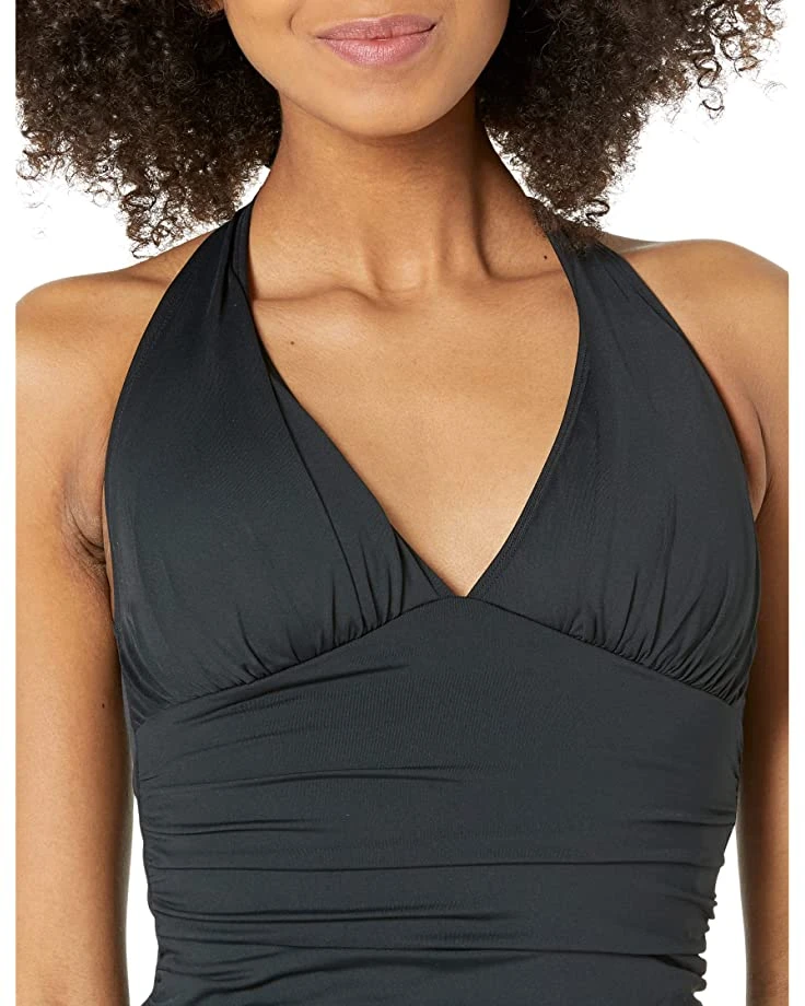 - Halter tankini top features a stylish plunge neckline and flattering shirred torso.