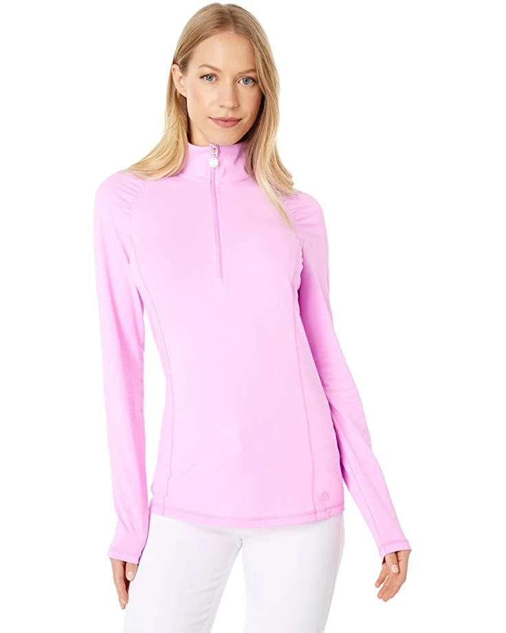 - The Lilly Pulitzer® Justine 1/2 Zip UPF 50+ pullover is perfect for any activity under the sun! It’s crafted in a printed Meryl® nylon blend that offers UPF 50+ protection, and designed with a half-zip closure, shirring details at the shoulders, and a shirttail hemline.