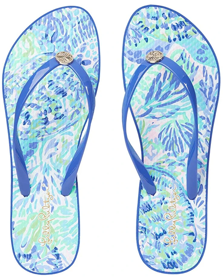 - Don’t leave for your next resort day without the Lilly Pulitzerยฎ Pool Flip-Flop. These thong sandals are crafted with a jelly upper and set on a printed EVA foam outsole.