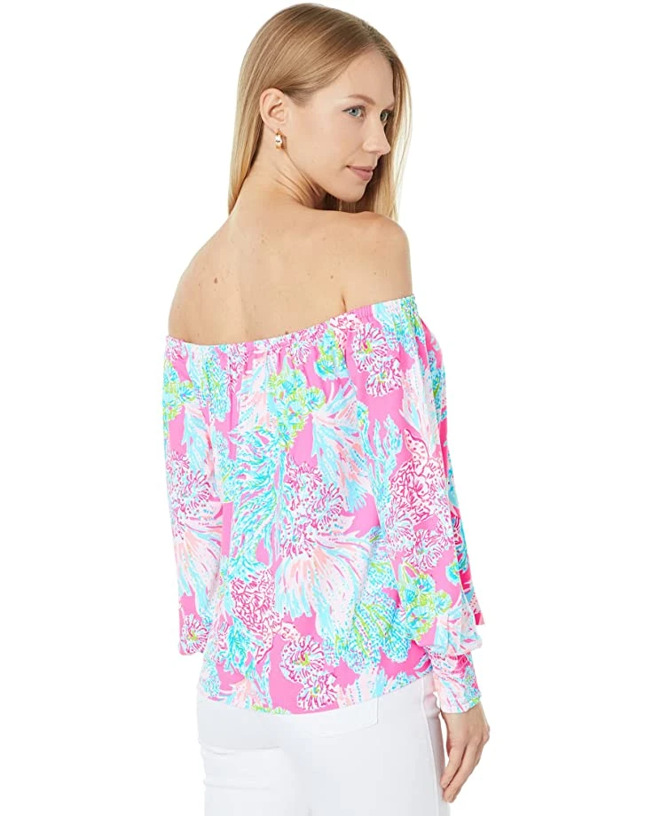 - The Lilly Pulitzerยฎ Lana Top is the perfect compliment to any wardrobe choice with its off-the-shoulder design, smocked cuffs and all-over vibrant floral print. Brighten up your day when this heads your way!