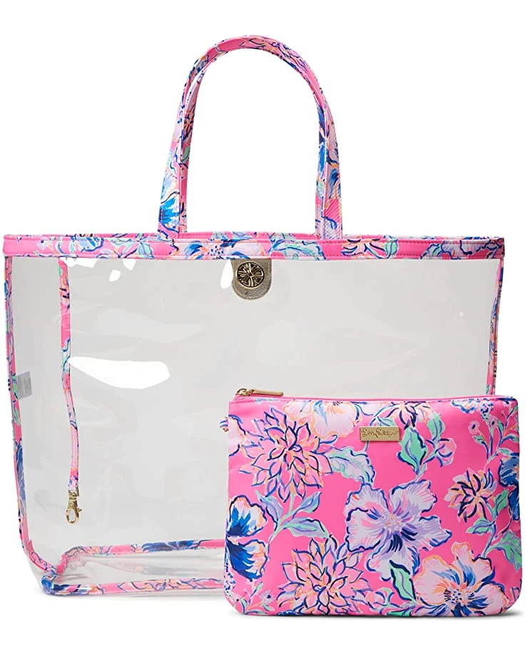 - A clear accessory to store your essentials when you are traveling, the Lily Pulitzer® Kendyl Tote Handbag comes with a pouch on the inside. This pouch features an allover printed design.