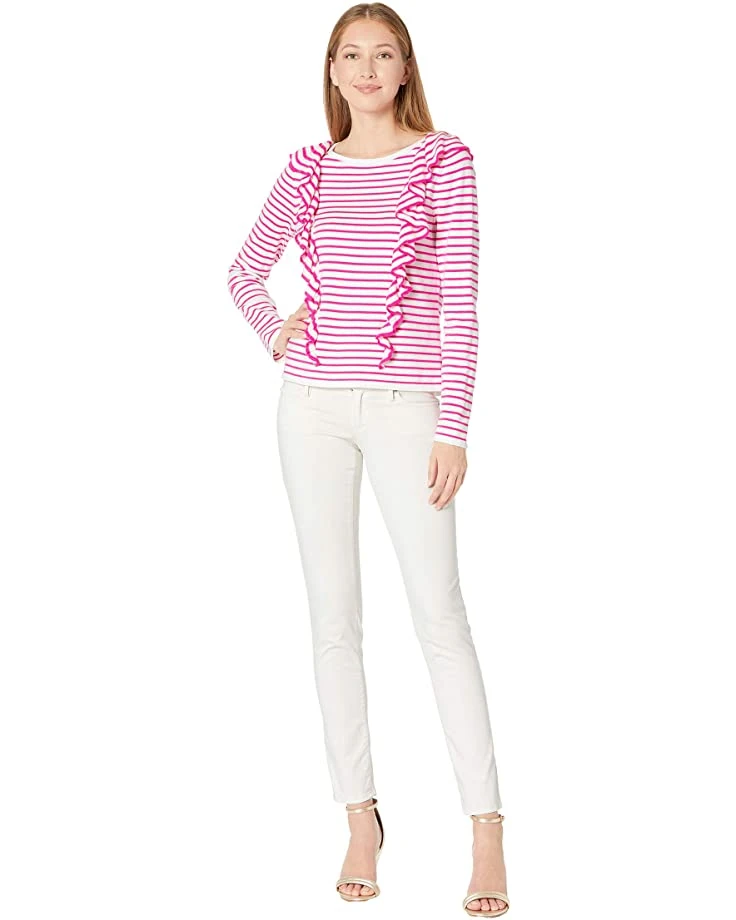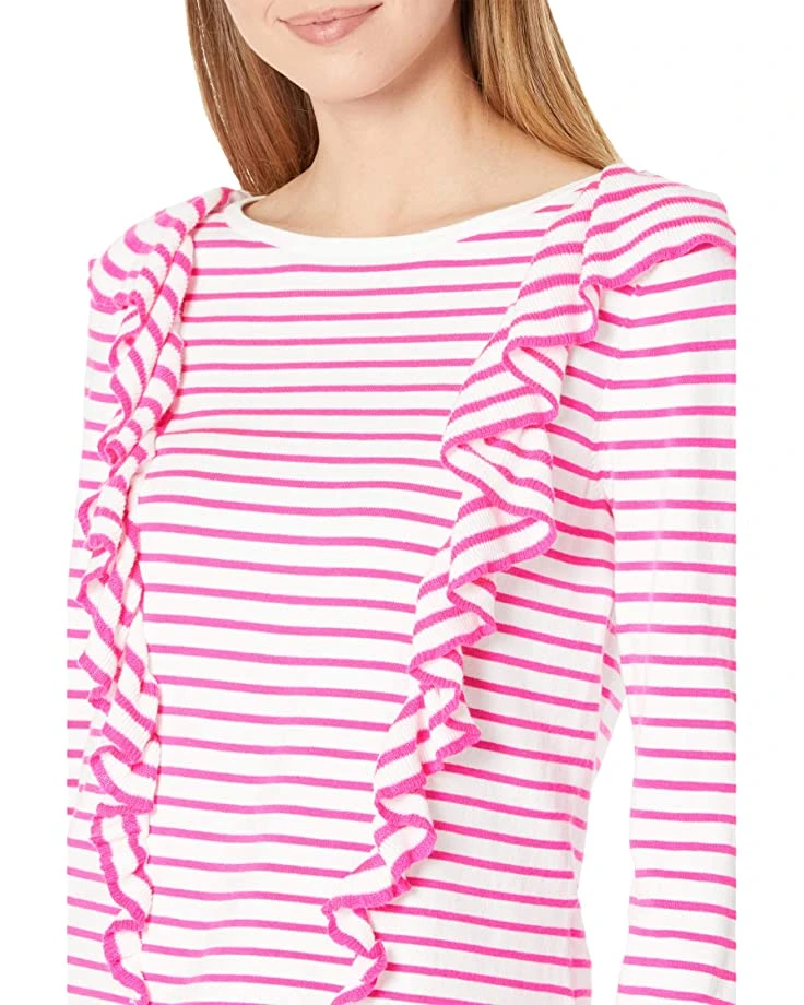 - The Lilly Pulitzer® Ruth Sweater is a cozy and cute style you’ll be reaching for all-season long. This boat-neck pullover is made of a soft combed cotton-spandex blend with allover stripes, and features ruffle details along the princess seams for an eye-catching finish.