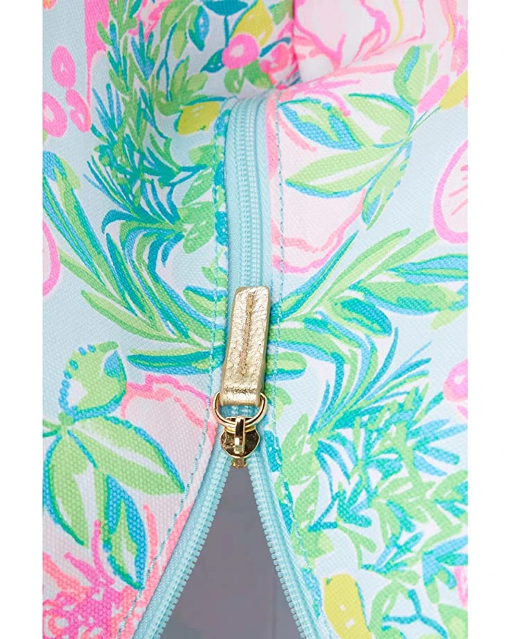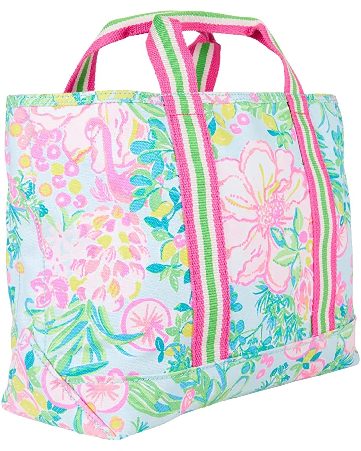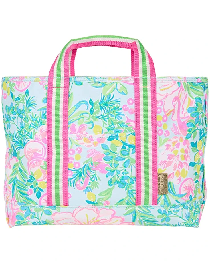 - Carry your essentials in style with the Lilly Pulitzerยฎ Mini Mercato Tote. Crafted to perfection this tote features a stripe designed top handle straps, exterior slip compartment, all over floral inspired design, zip closure, and a flat base for added support.