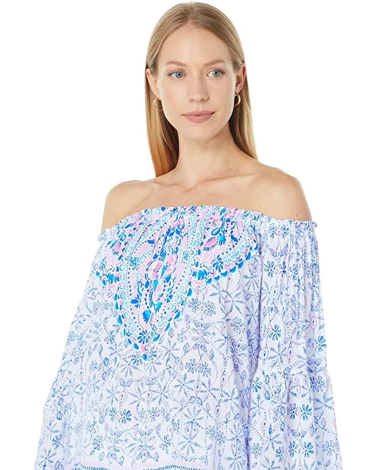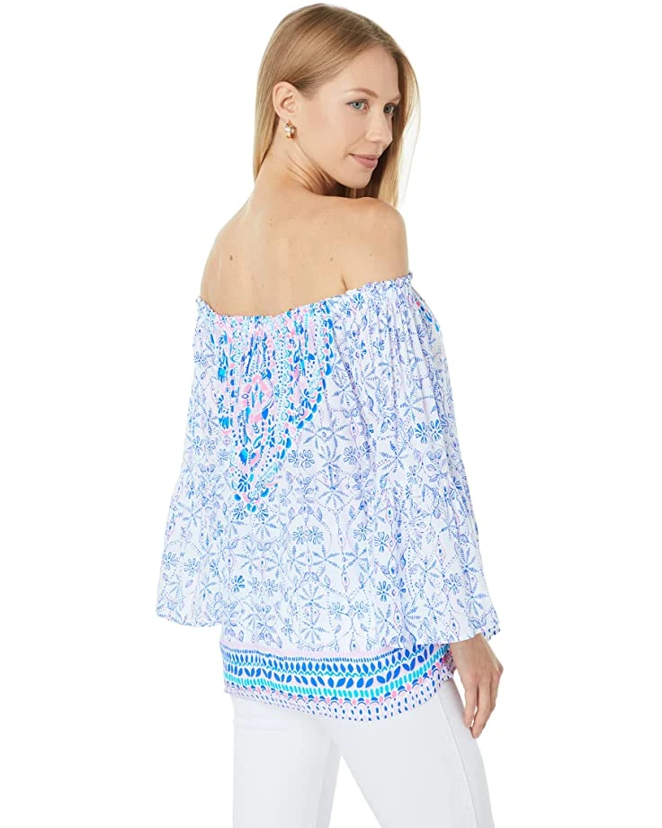 - The Lilly Pulitzer® Nevie Top is a beautiful, lightweight, off-the-shoulder design featuring an all-over floral print with a flowy silhouette.